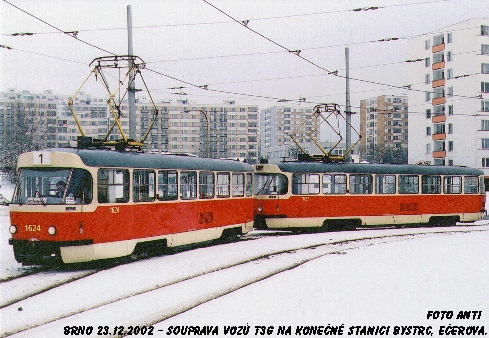Fotografie ČKD Tatra T3G 1624 DPMB | ČKD Tatra T3G 1625 DPMB | Brno-Bystrc | Fotogalerie BMHD