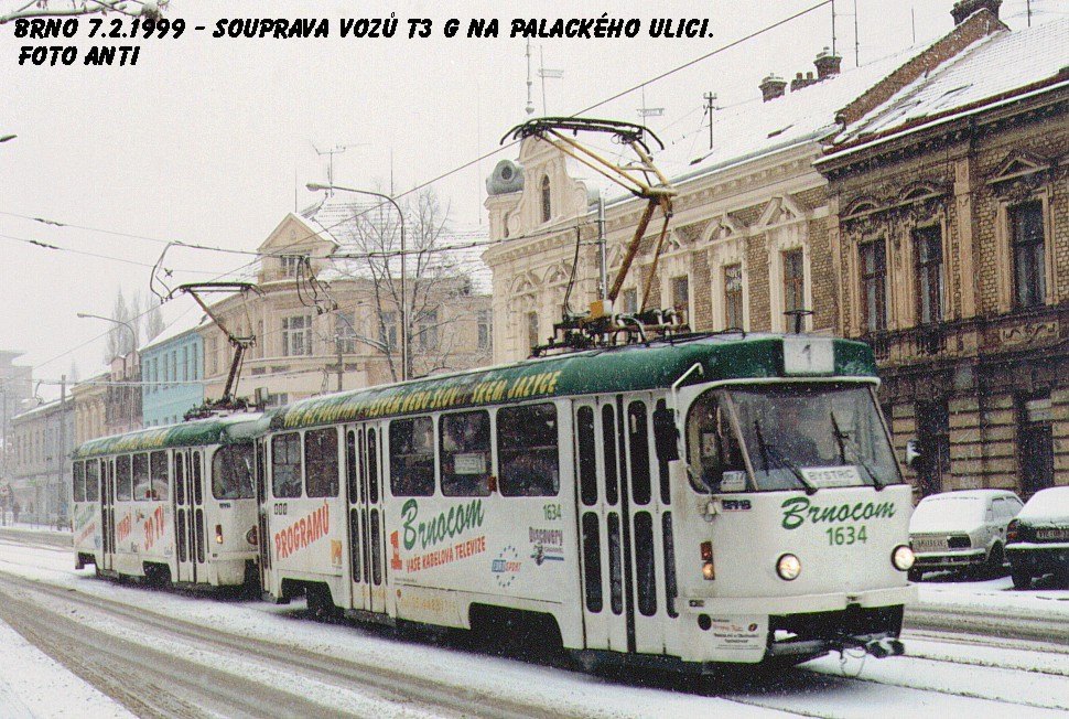 Fotografie ČKD Tatra T3G 1634 DPMB | ČKD Tatra T3G 1616 DPMB | Brno-Královo Pole, Palackého | Fotogalerie BMHD
