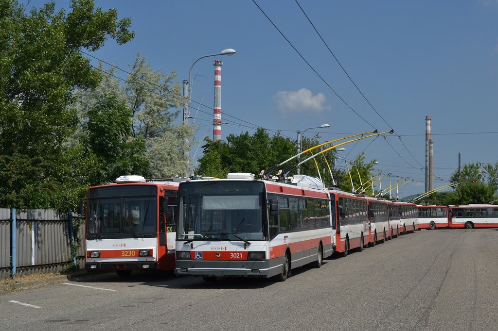 Fotografie Škoda 21 Tr 3021 DPMB | Škoda 14 TrR 3230 DPMB | Brno, Vozovna Slatina | Fotogalerie BMHD