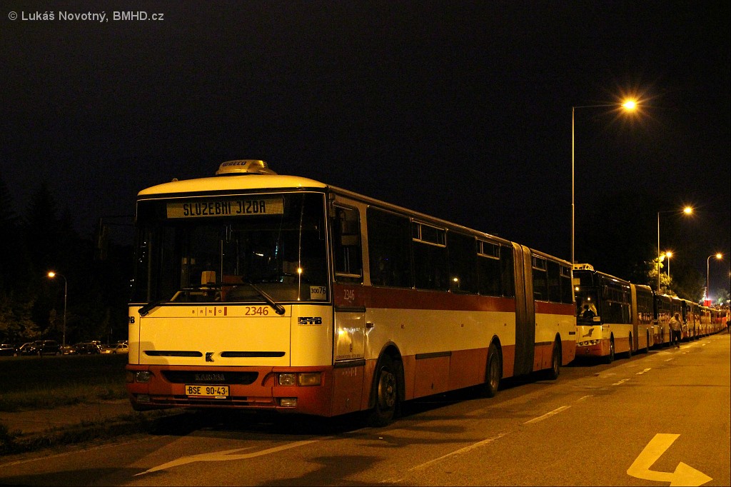 Záložní autobusy čekající na odvoz návštěvníků z ohňostrojů konaných v rámci BMUE.