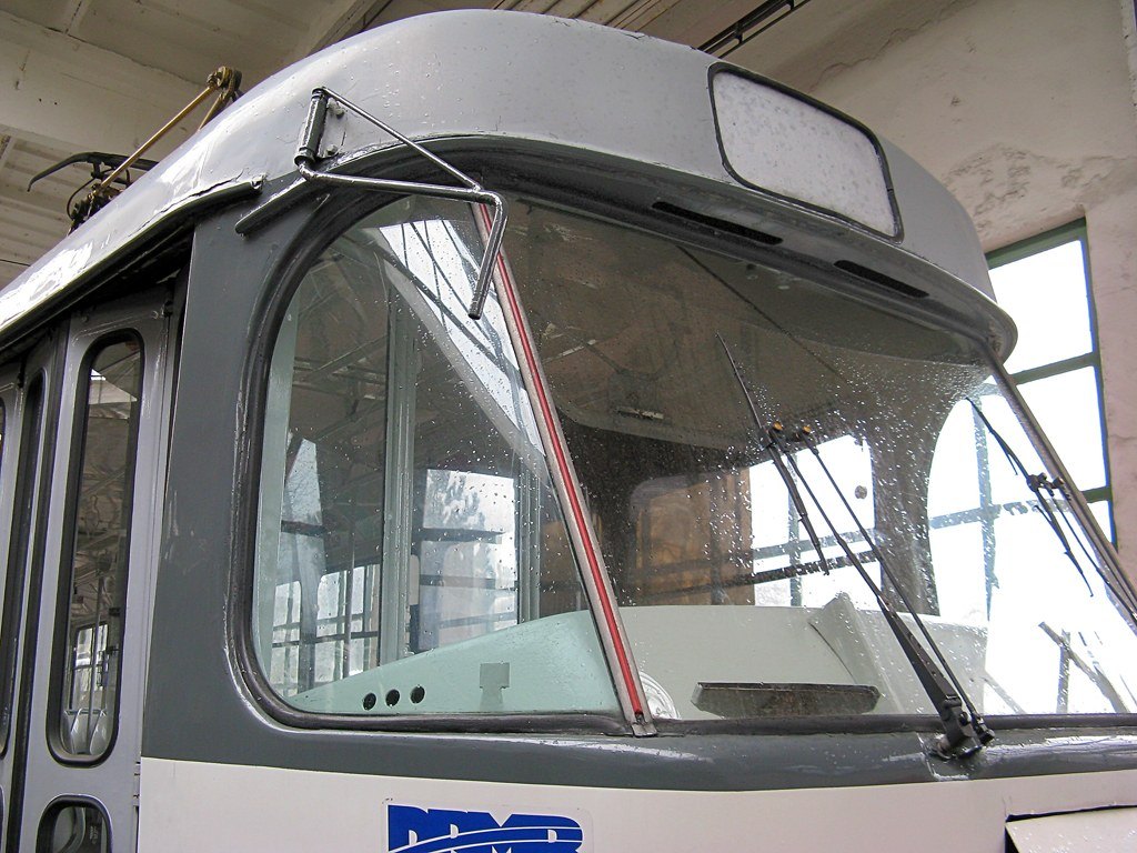 čelo vozu T3 s původními prvky (držák zpětného zrcátka a kurzového čísla)