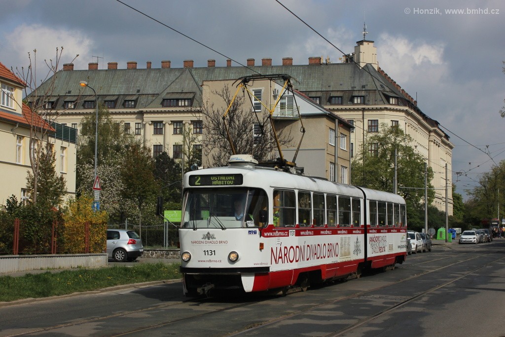 K2 1131 přibližně 2 týdny před definitivním odstavením. Z důvodu dopravní nehody v ulici Bubeníčkově byla linka 2 odkloněna do smyčky Zemědělská.