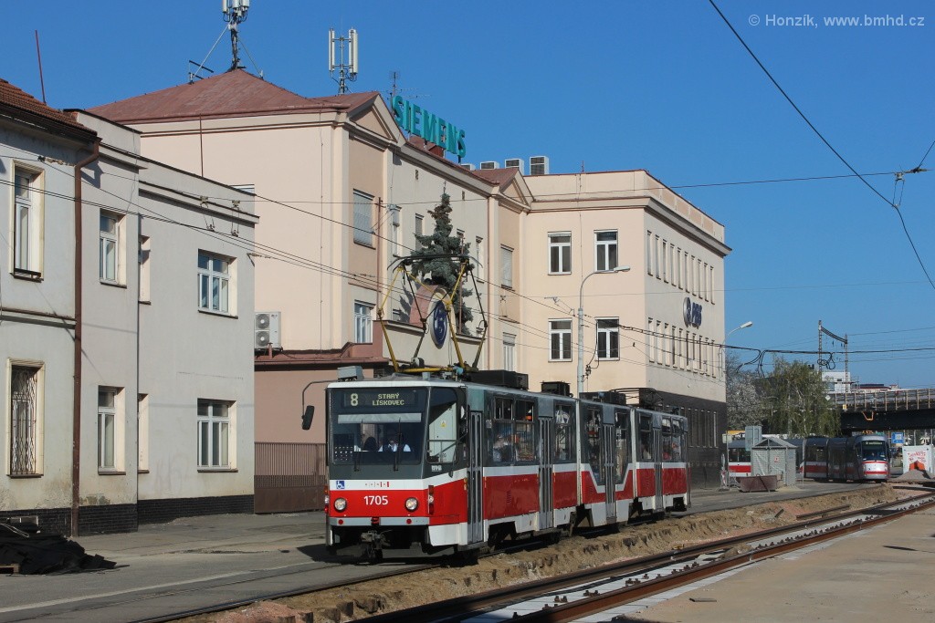 Fotografie ČKD Tatra KT8D5R.N2 1705 DPMB | Brno-Černovice, Olomoucká | Fotogalerie BMHD