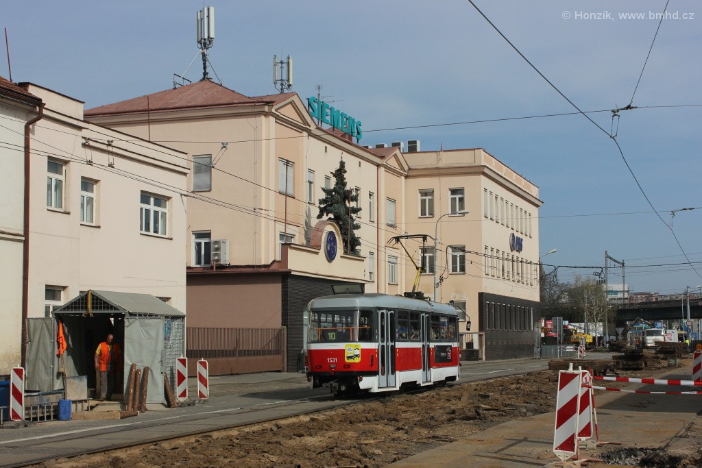 Z důvodu rekonstrukce tramvajové trati a povrchu v ulici Olomoucké (1.4. – 30.6.2016) byl zaveden jednokolejný provoz. Nejdříve byla měněna kolej ve směru do centra a od 15.5.2016 probíhala výměna kolejí ve směru z centra.