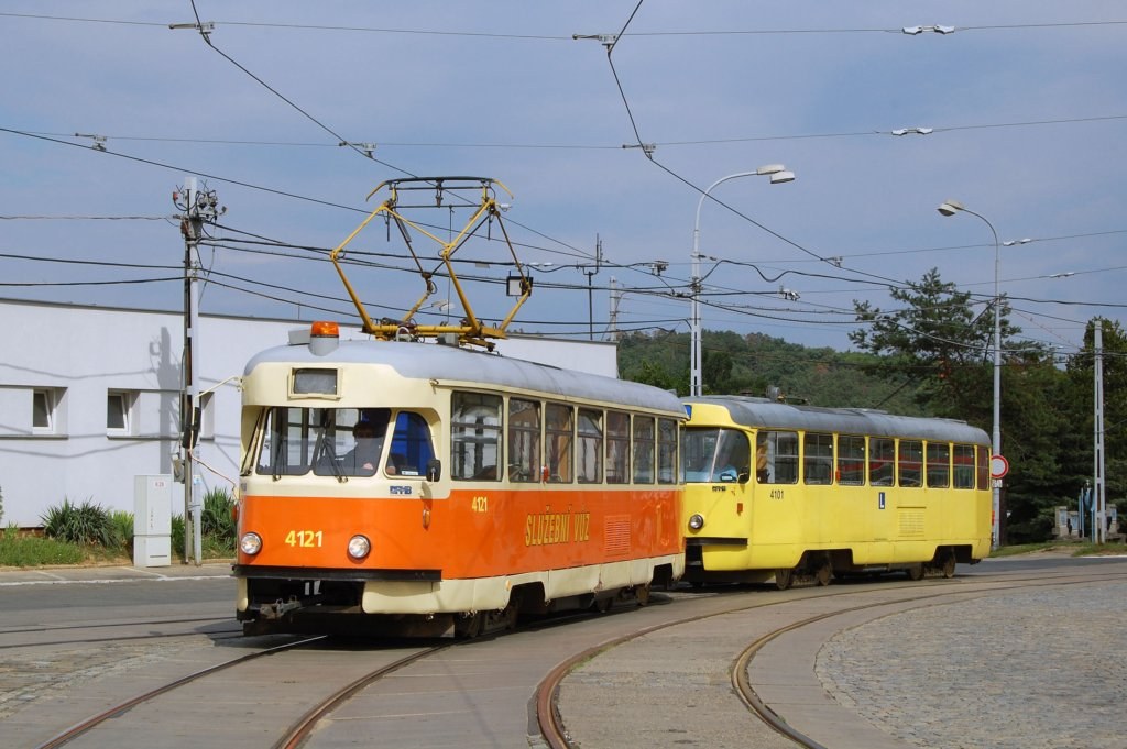 Fotografie Tatra T2 služební 4121 DPMB | ČKD Tatra T3 školní 4101 DPMB | Brno-Medlánky, vozovna Medlánky | Fotogalerie BMHD
