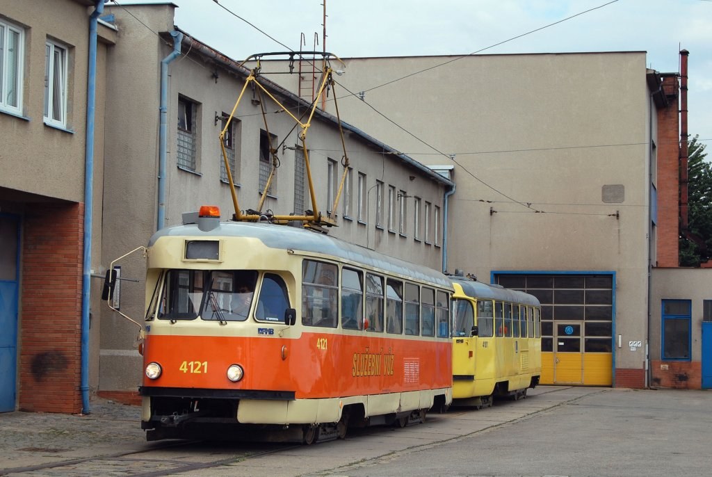Fotografie Tatra T2 služební 4121 DPMB | ČKD Tatra T3 školní 4101 DPMB | Brno-Medlánky, vozovna Medlánky | Fotogalerie BMHD