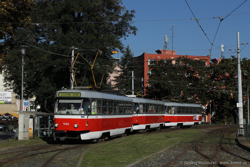 Fotografie ČKD Tatra T3M 1544 DPMB | ČKD Tatra T3G 1637 DPMB | ČKD Tatra T3G 1638 DPMB | Brno-Pisárky, Hlinky | Fotogalerie BMHD