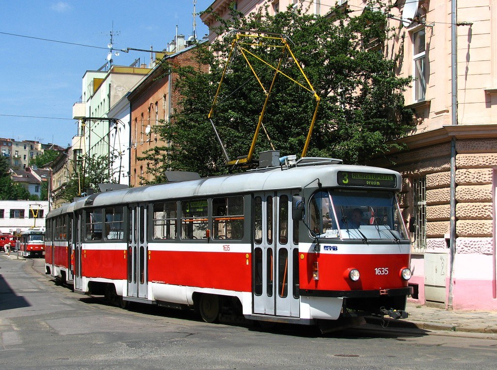 Fotografie ČKD Tatra T3G 1635 DPMB | ČKD Tatra T3G 1636 DPMB | Brno-Husovice, Mostecká | Fotogalerie BMHD