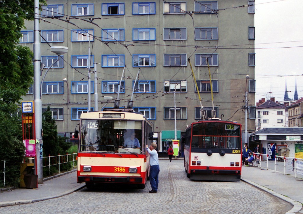 Fotografie Škoda 14 Tr01 3186 DPMB | Škoda 14 Tr17/6M 3285 DPMB | Brno-Staré Brno, Mendlovo náměstí | Fotogalerie BMHD