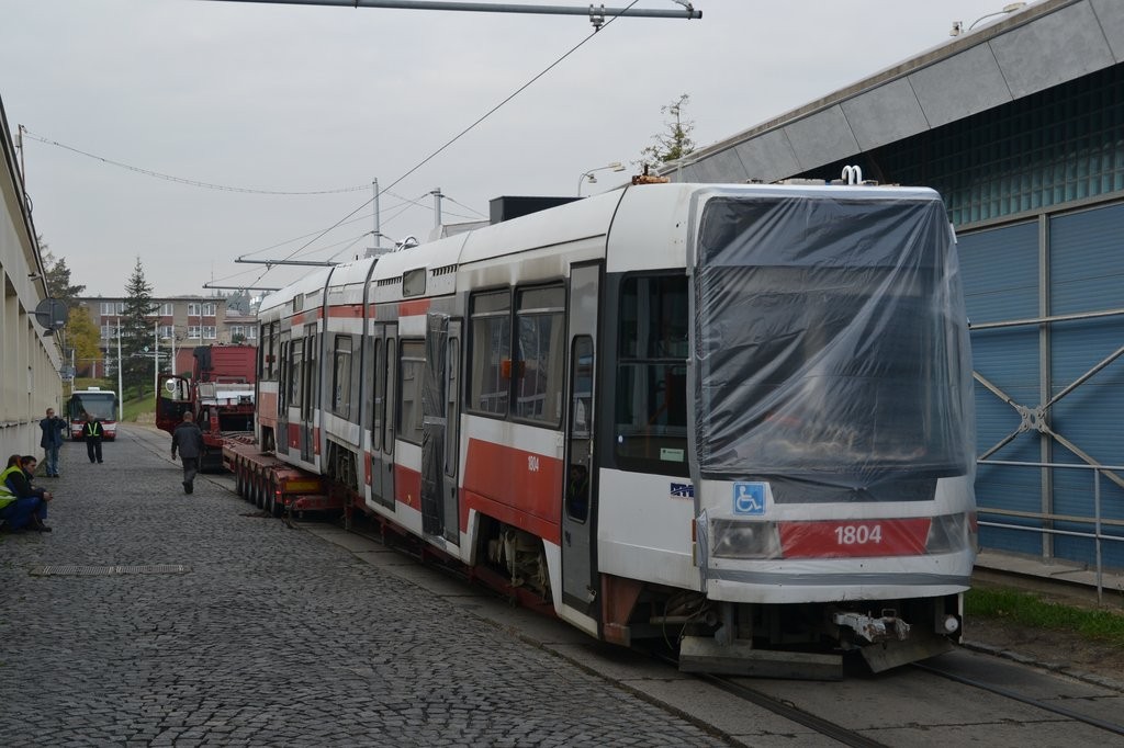 Nakládka tramvaje RT6N1 1804 k odvozu do polské Poznaně.