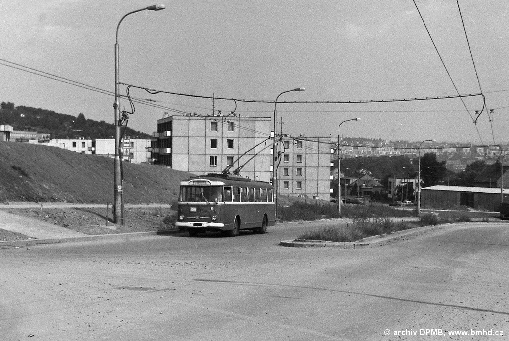 9Tr 3085 jedoucí po zbrusu nové trolejbusové trati na Kamenný vrch.