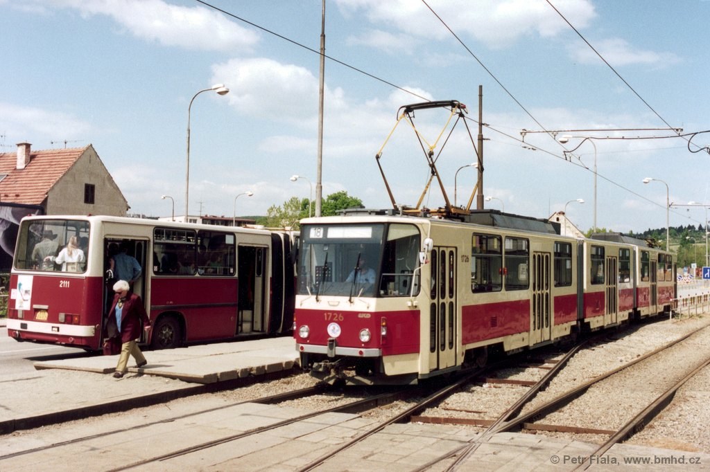 Fotografie Ikarus 280.08A 2111/II DPMB | ČKD Tatra KT8D5SU 1726 DPMB | Brno-Bystrc, Obvodová | Fotogalerie BMHD