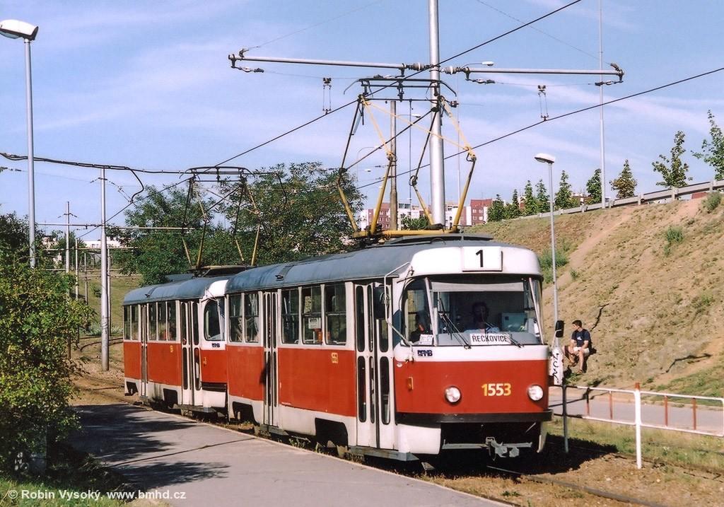 Fotografie ČKD Tatra T3 1553 DPMB | ČKD Tatra T3 1554 DPMB | Brno-Bystrc | Fotogalerie BMHD