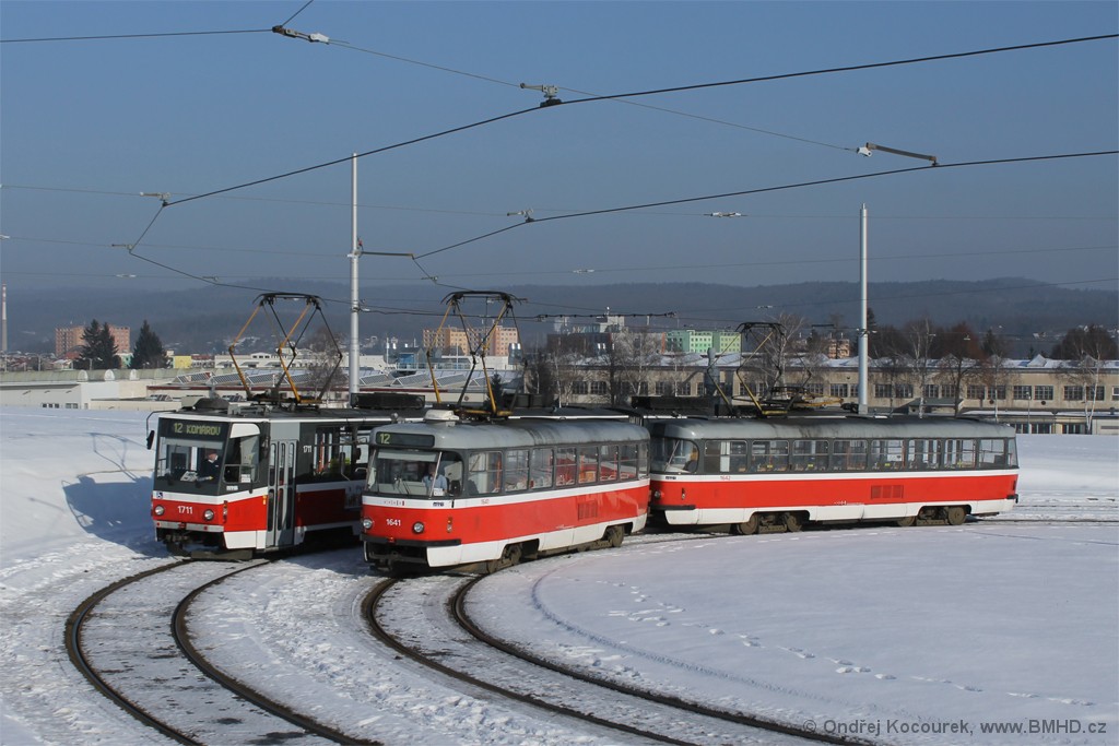 Fotografie ČKD Tatra KT8D5R.N2 1711 DPMB | ČKD Tatra T3G 1641 DPMB | ČKD Tatra T3G 1642 DPMB | Brno-Královo Pole, Purkyňova | Fotogalerie BMHD