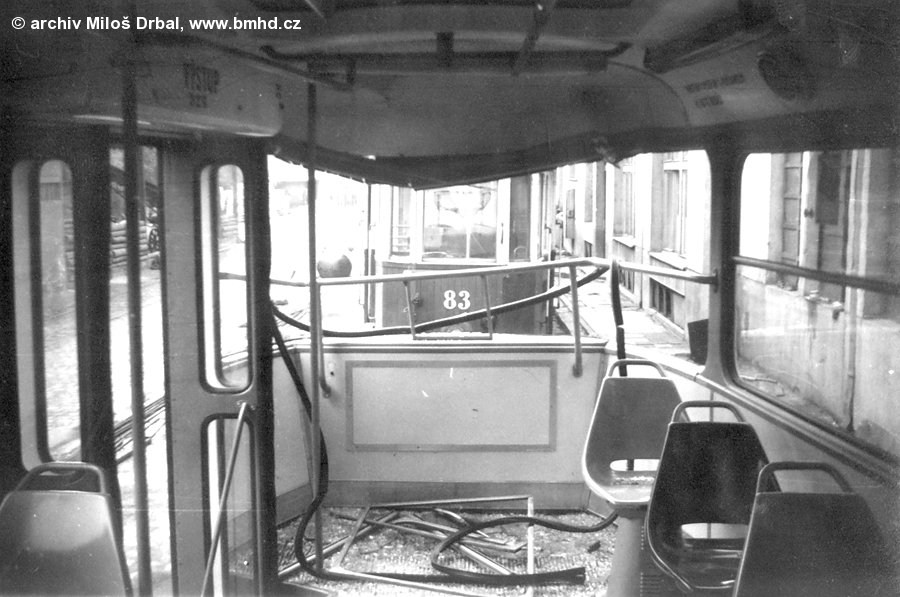 Následky po najetí vozem ev.č. 83/III dne 27.9.1968