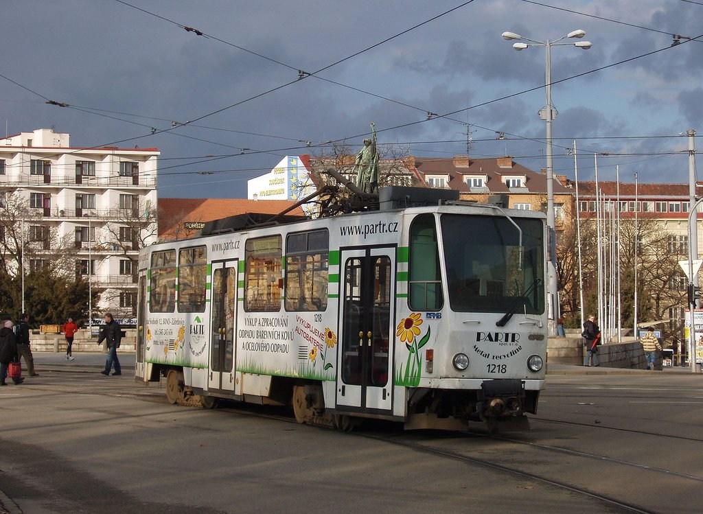Odstavená T6A5 1218 s utrženým kolem a strženým pantografem. Na tomto místě stála až do nočních hodin, kdy odtud byla protisměrem odtažena do vozovny. Linka 6, toho času jezdící v trase Královo Pole - Hlavní nádraží, byla odkloněna na Malinovského náměstí.