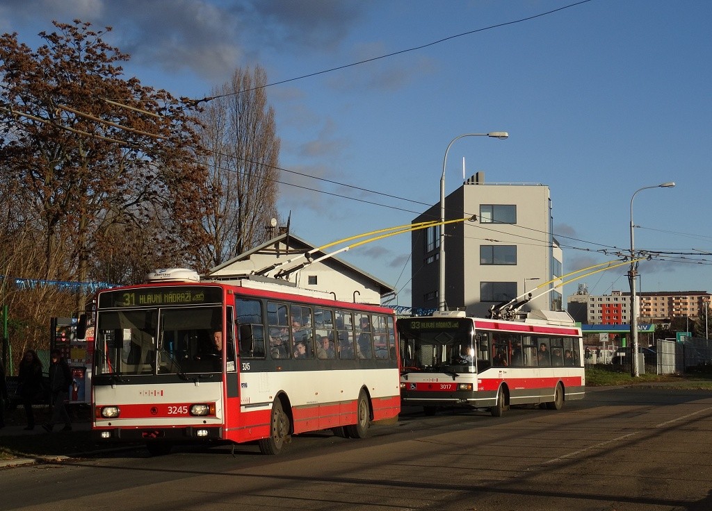 Fotografie Škoda 14 TrR 3245 DPMB | Škoda 21 Tr 3017 DPMB | Brno-Černovice, Životského | Fotogalerie BMHD