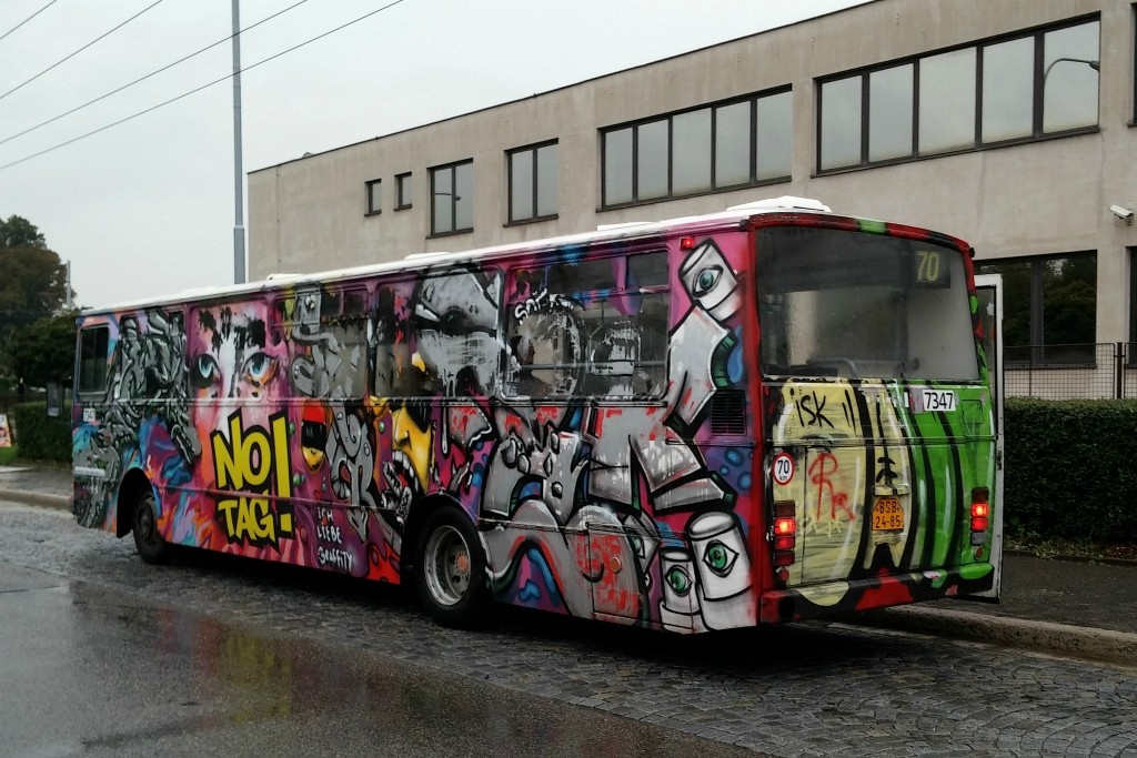Jediné vypravení vozu 7347 s graffiti na pravidelnou linku.