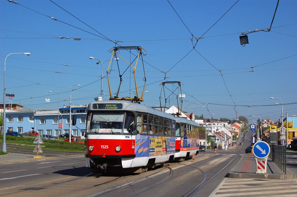 Fotografie ČKD Tatra T3 1525 DPMB | ČKD Tatra T3 1528 DPMB | Brno-Královo Pole, Kuřimská | Fotogalerie BMHD