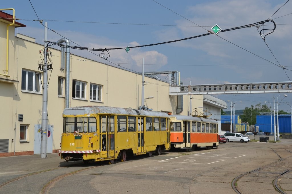 Tramvaje T2 4121 a 685 (ex Ostrava) čekající na renovaci.