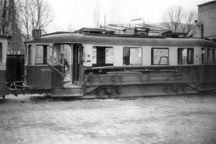 Vůz ev.č. 41 po kolizi s nákladním autem na Koněvově (dnes Vídeňské) ulici dne 12.11.1968. Poznámka k evidenčnímu číslu: dle některých pramenů byl tento vůz již od roku 1967 veden v parku služebních vozů pod číslem 804/II.