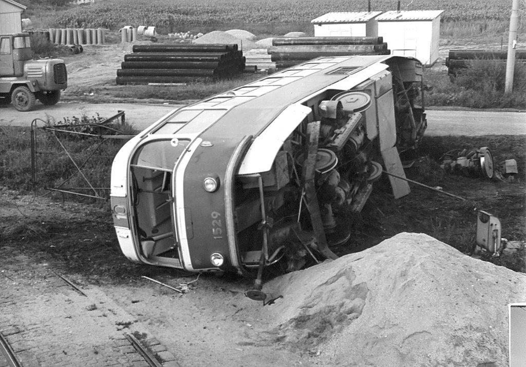 Vykolejení v oblouku v Jundrovské ulici.