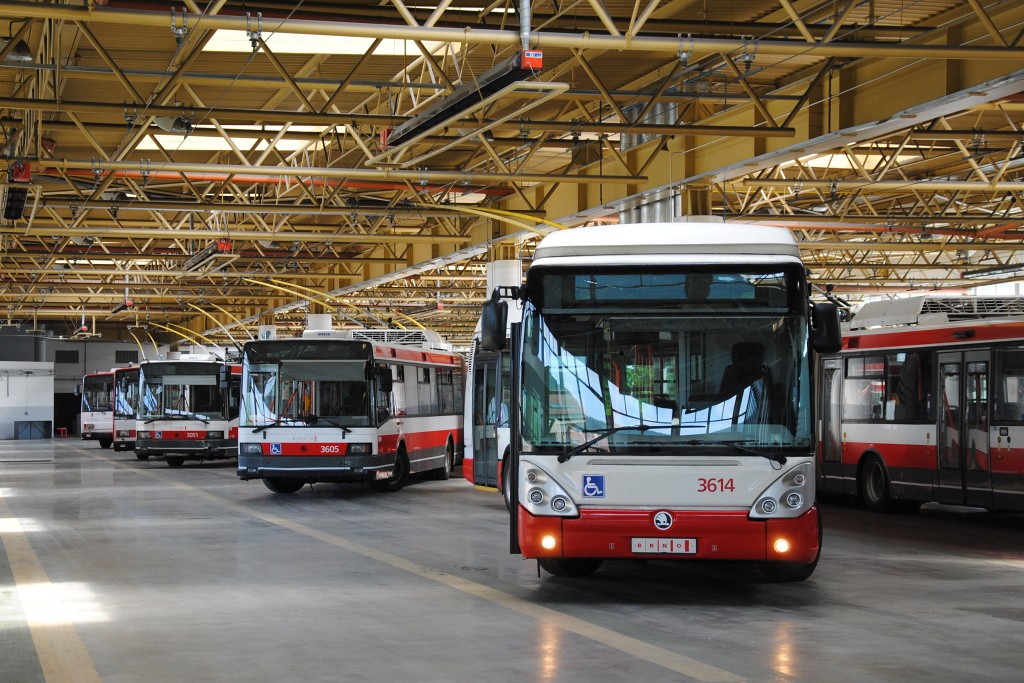 Fotografie Škoda 25 Tr Citelis 1B 3614 DPMB | Škoda 22 Tr 3605 DPMB | Škoda 21 Tr 3051/II DPMB | Brno-Komín, vozovna Komín | Fotogalerie BMHD