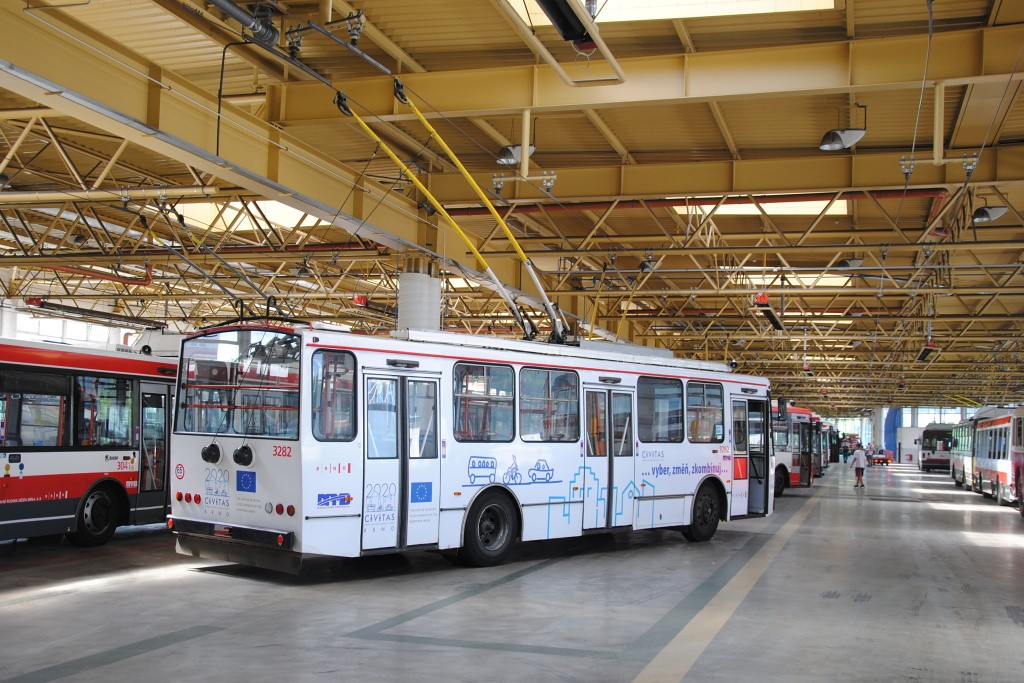 přípravy na den otevřených dveří k příležitosti 20 let od uvedení vozovny Komín do provozu - ukázka trolejbusů na odstavné ploše