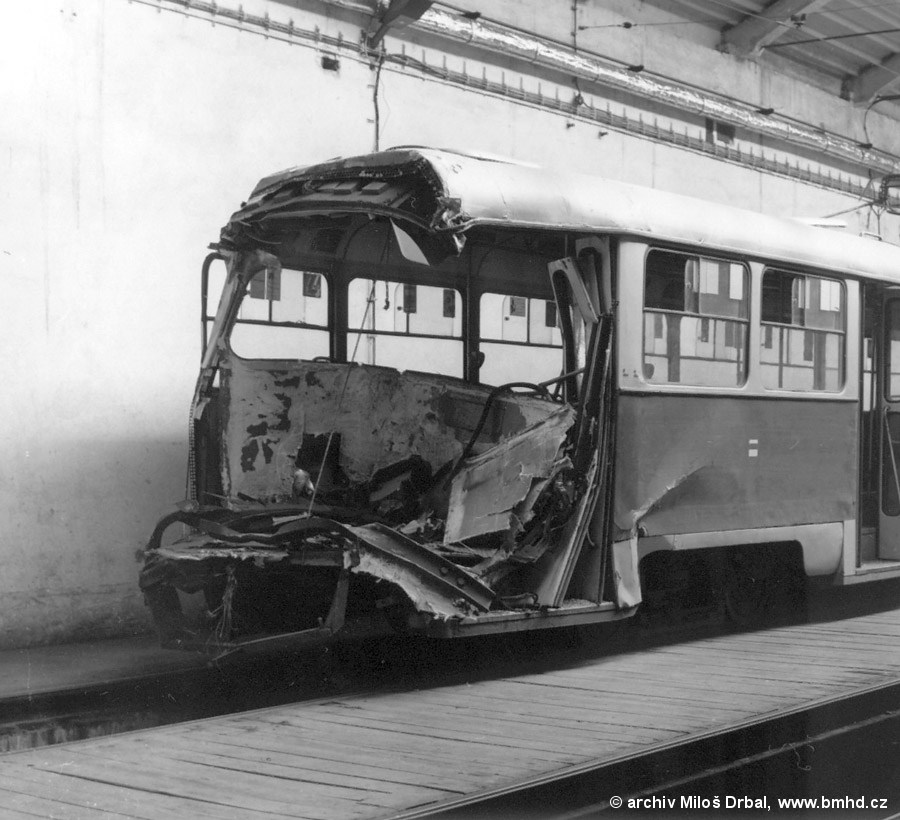 následky najetí 1571+1600 do 1525+1512 v zastávce Jungmannova dne 2.6.1984