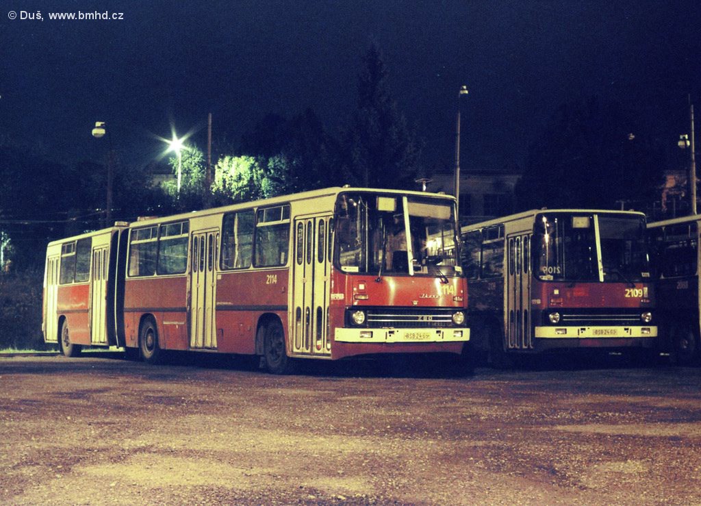 Fotografie Ikarus 280.08A 2114/II DPMB | Ikarus 280.08A 2109/II DPMB | Brno-Medlánky, vozovna Medlánky | Fotogalerie BMHD