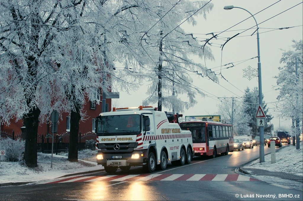 Fotografie Mercedes-Benz Actros 4144 5332 (9B6 1088) DPMB | Škoda 14 TrR 3250 DPMB | Brno-Slatina, Šlapanická | Fotogalerie BMHD