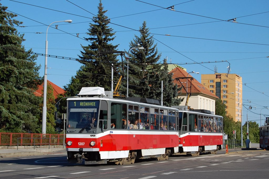 Fotografie ČKD DS T6A5 1207 DPMB | ČKD DS T6A5 1208 DPMB | Brno-Královo Pole, Kuřimská | Fotogalerie BMHD