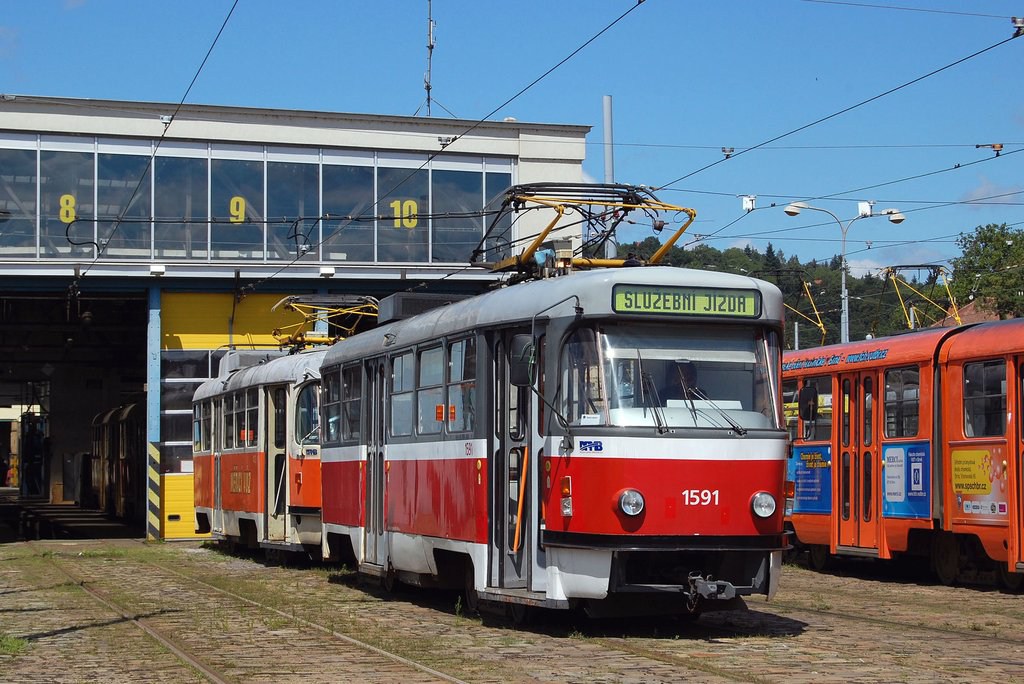 Fotografie ČKD Tatra T3M 1591 DPMB | ČKD Tatra T3 služební 4123 DPMB | Brno-Pisárky, vozovna Pisárky | Fotogalerie BMHD
