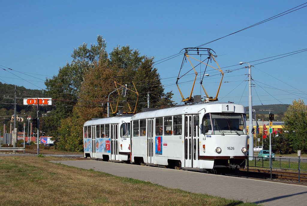 Fotografie ČKD Tatra T3G 1626 DPMB | ČKD Tatra T3G 1631 DPMB | Brno-Komín, Kníničská | Fotogalerie BMHD