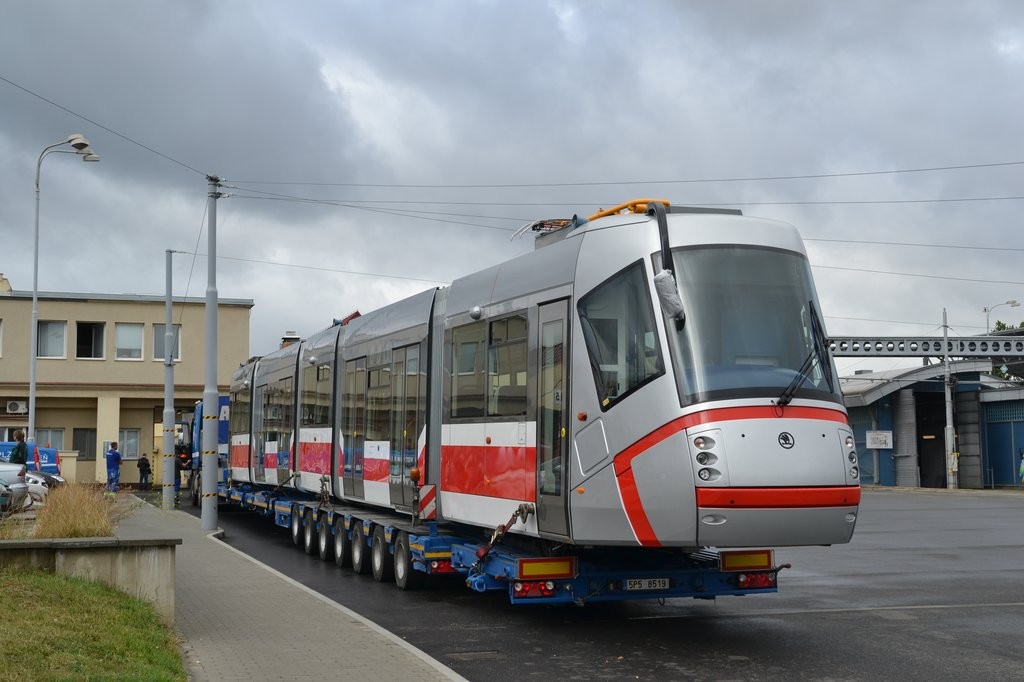 První vůz z 20kusové dodávky vozů 13T6 krátce pro přivezení do vozovny Medlánky.