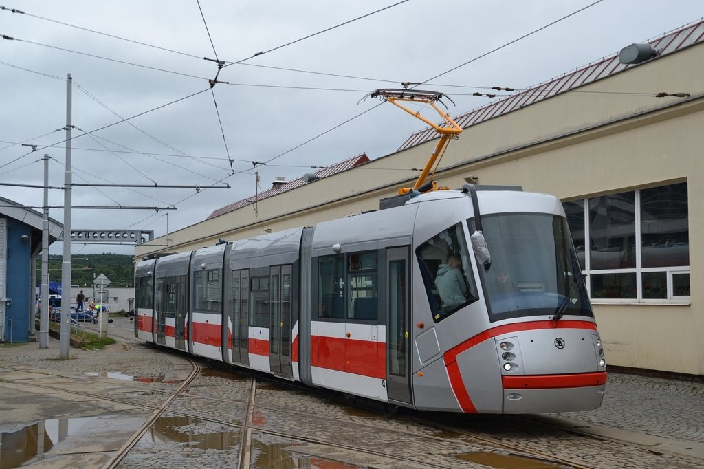 První metry nového vozu Škoda 13T6 na brněnských kolejích.