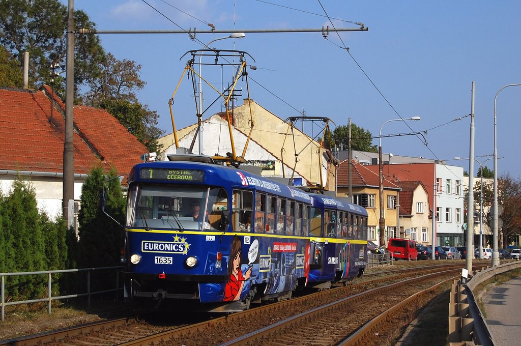 Fotografie ČKD Tatra T3G 1635 DPMB | ČKD Tatra T3G 1636 DPMB | Brno-Komín, Kníničská | Fotogalerie BMHD