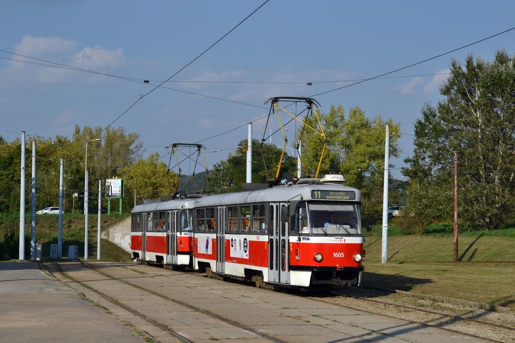 Fotografie ČKD Tatra T3G 1605 DPMB | ČKD Tatra T3G 1617 DPMB | Brno-Bystrc, Rakovecká | Fotogalerie BMHD