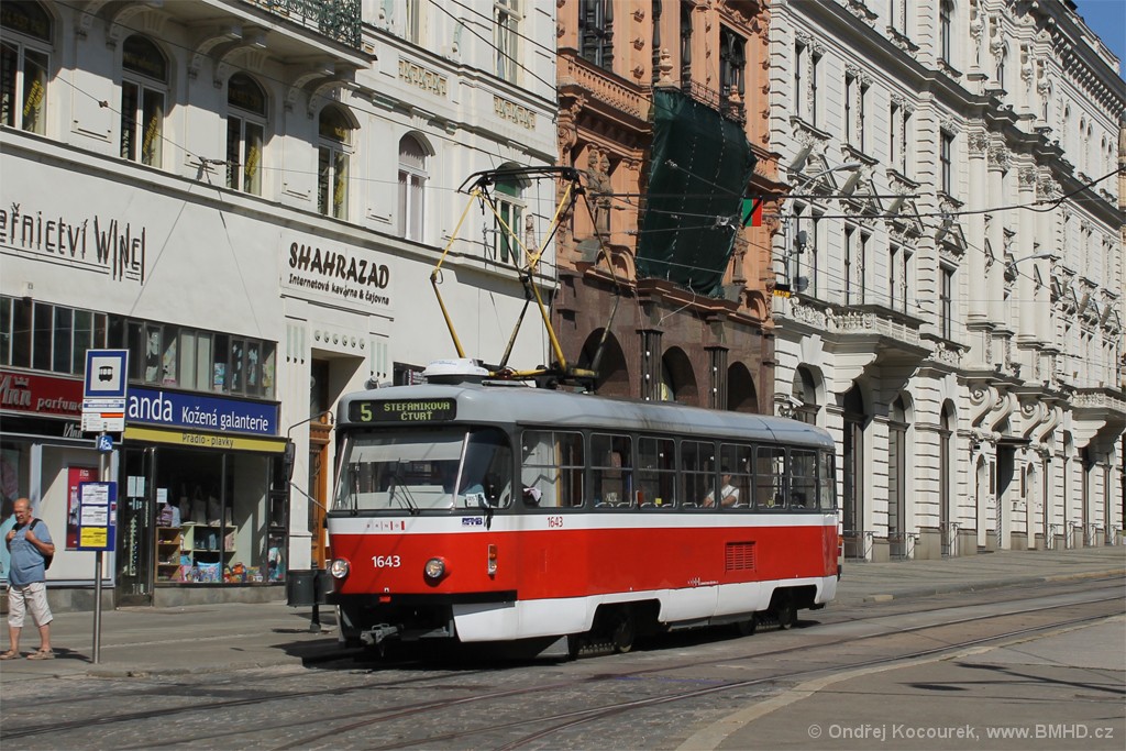 Fotografie ČKD Tatra T3G 1643 DPMB | Brno-střed, Rooseveltova | Fotogalerie BMHD