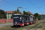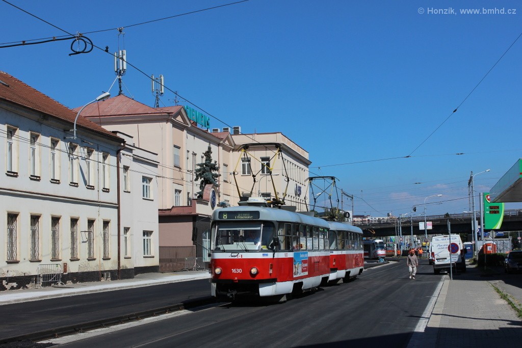 Záložní souprava za vynechaný spoj linky 8. Z důvodu rekonstrukce tramvajové trati a povrchu v ulici Olomoucké (1.4. – 30.6.2016) byl zaveden jednokolejný provoz. Nejdříve byla měněna kolej ve směru z centra a od 15.5.2016 probíhala výměna kolejí ve směru do centra.