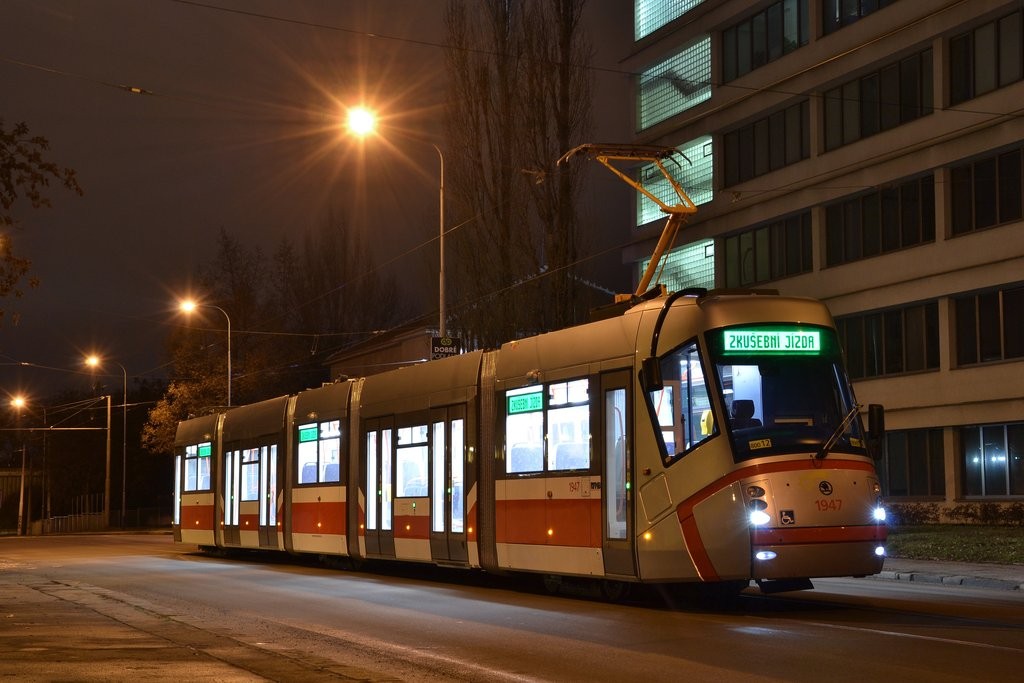 Zkušební jízda nově dodané Škody 13T6 ev. č. 1947