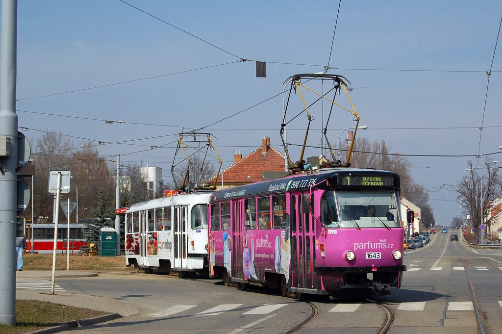 Fotografie ČKD Tatra T3G 1643 DPMB | ČKD Tatra T3G 1644 DPMB | Brno-Řečkovice, Terezy Novákové | Fotogalerie BMHD