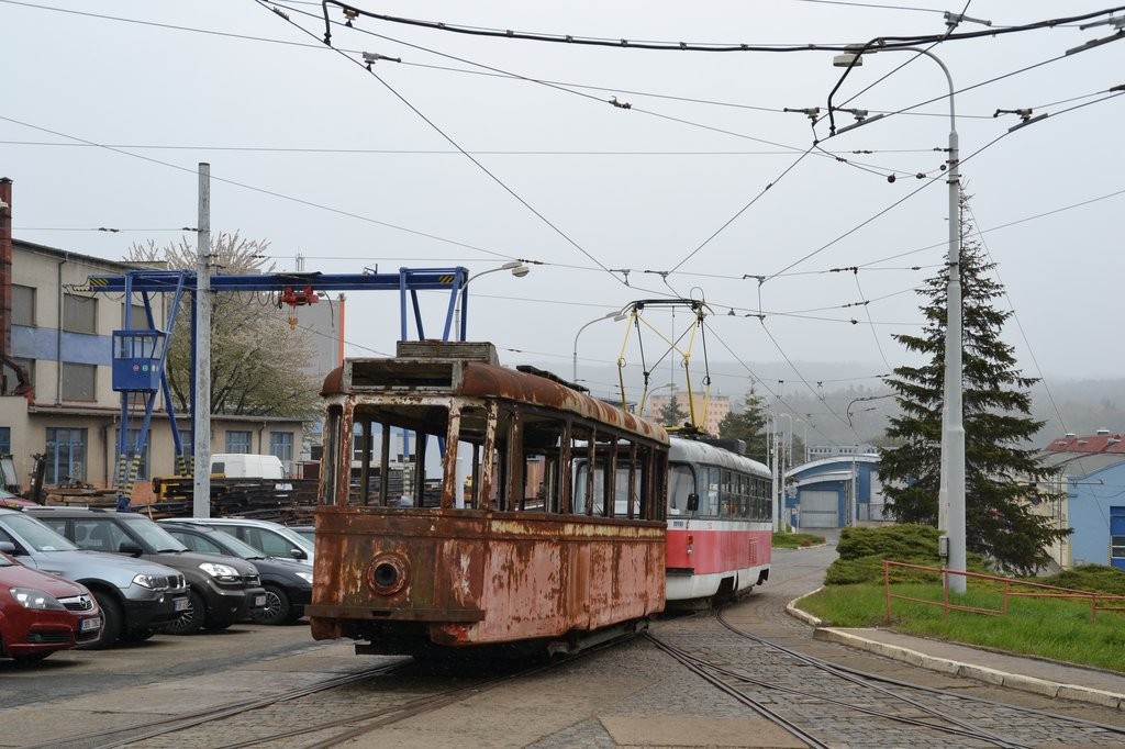 Manipulace s motorovým vozem 4MT ev. č. 134 krátce po složení ze silničního návěsu v medlánecké vozovně.
