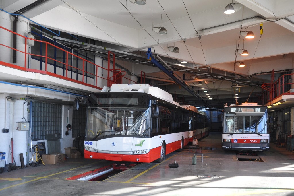 trolejbus 3301 čerstvě po dodání na hale lehké údržby ve vozovně Komín