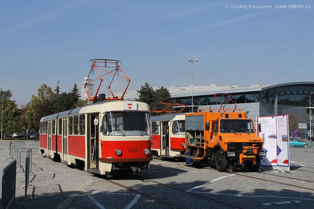 Fotografie Mercedes-Benz Unimog U 1250 Zweiweg 5297 (BSC 52-62) DPMB | ČKD Tatra T3 1525 DPMB | ČKD Tatra K2YU 1123/II DPMB | Brno-Pisárky, Výstaviště BVV | Fotogalerie BMHD