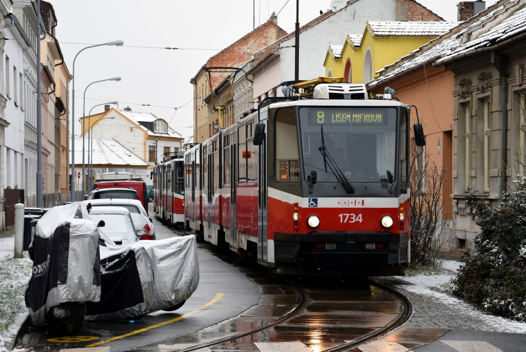 Fotografie ČKD Tatra KT8D5R.N2 1708 DPMB | ČKD Tatra KT8D5N 1734 DPMB | Brno-Židenice, Porhajmova | Fotogalerie BMHD