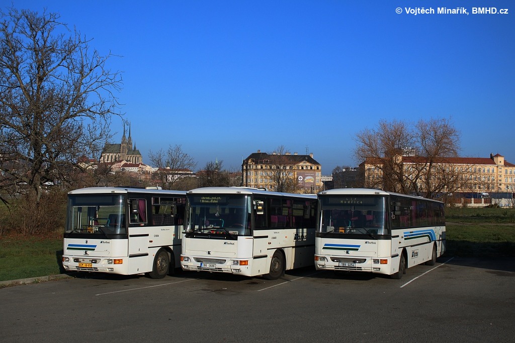 Fotografie Karosa C 954.1360 BZM 68-65 Tourbus | Karosa C 954E.1360 3B6 0688 Tourbus | Karosa C 954.1360 1B9 0254 Tourbus | Brno-Trnitá, Rosická | Fotogalerie BMHD