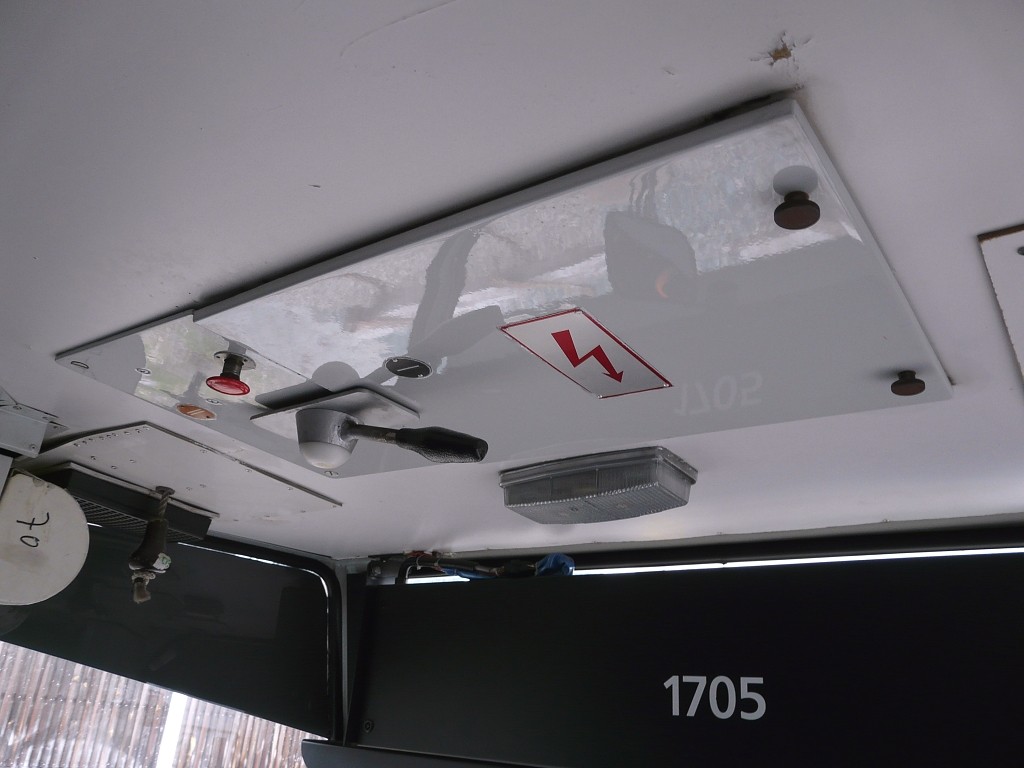 Původní umístění odpojovače trolej-zem na stropě v A kabině. Při velkých prohlídkách byl odpojovač přesunut do zástěny A kabiny. 1705 byla v roce 2017 posledním vozem s původním umístěním odpojovače.