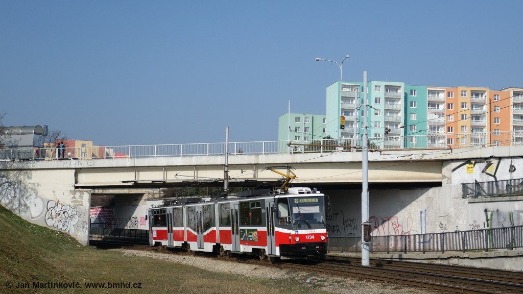 Fotografie ČKD Tatra KT8D5N 1734 DPMB | Brno-Starý Lískovec, Osová | Fotogalerie BMHD