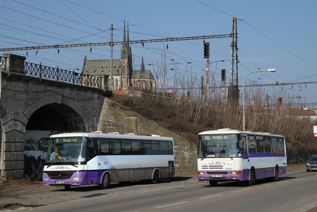 Fotografie SOR C 12 7B2 2121 SEBUS | Karosa C 934.1351 2B6 6706 SEBUS | Brno-Trnitá, Uhelná | Fotogalerie BMHD